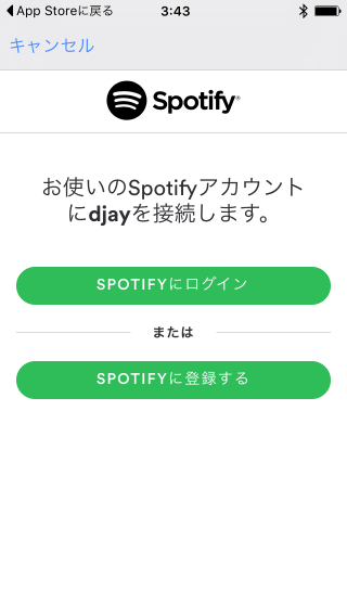 djay FREEと同様にインストールして、Spotifyへのログインを済ませておきます。