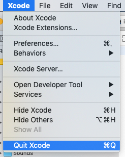 次に、Xcodeをいったん終了します。