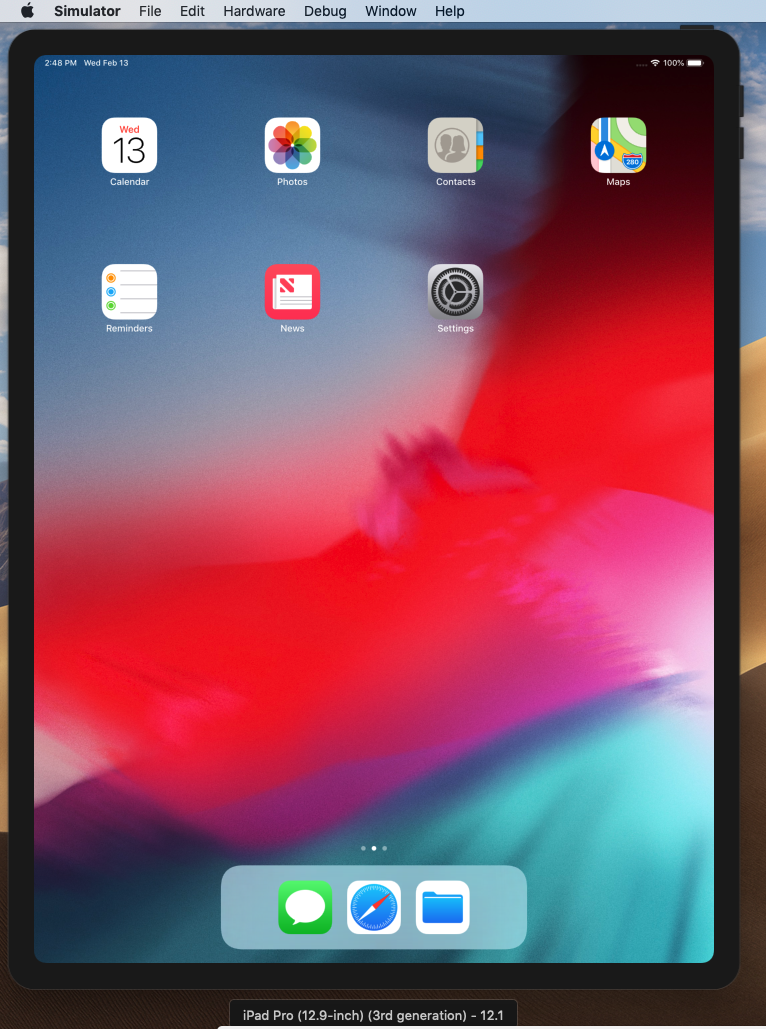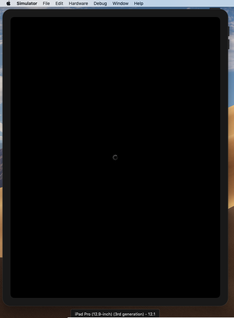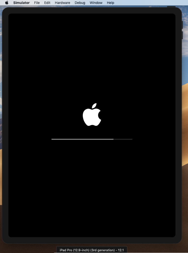 Xcodeウィンドウを最小化して待っていると、iOSシミュレーターが起動し、iPad画面が表示されます。アップルマークが現れるまで暫くかかりますが・・・