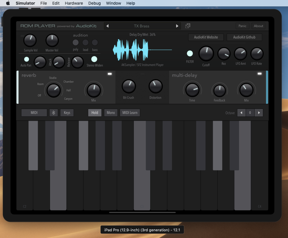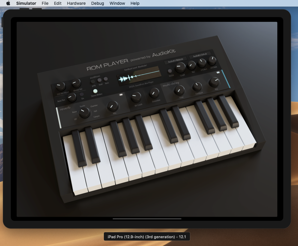 MacのXcodeにGitHubの「AudioKit ROMPlayer」iOS FMサンプルシンセのプロジェクトを読み込んで、iPad Pro/iOS 12.1でiOSシミュレーターで動かしてみたので成功事例を紹介します。最も成功率が高いので?