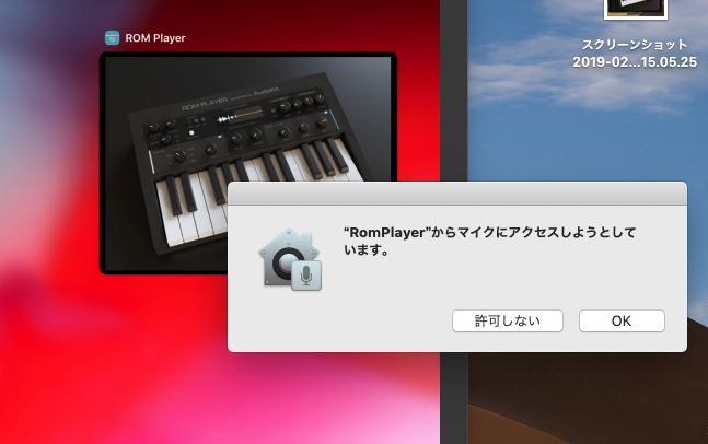 私のMac miniにはマイクは繋いでいないですが「OK」をクリック。