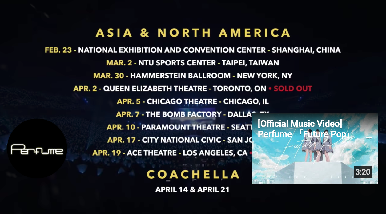 Perfumeの4th海外ツアーが2月23日に上海からスタート。空港で3人を歓迎する人たちの様子や、アメリカメディアでのコーチェラ出演記事などを紹介します。前回の2016のステージも?
