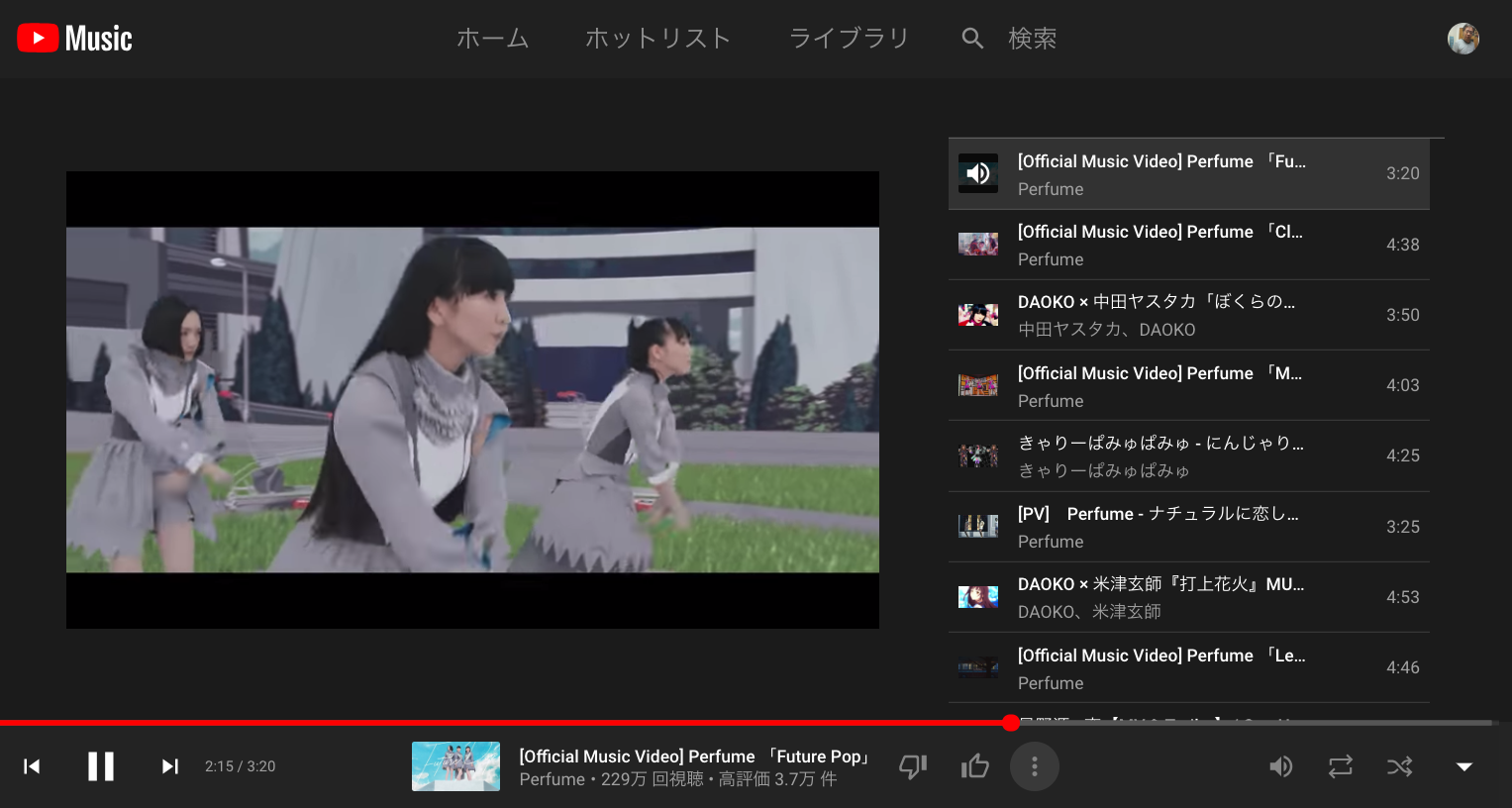 YouTube Music!Perfumeを聴いてみたら?自動プレイリストのように使えて便利?!