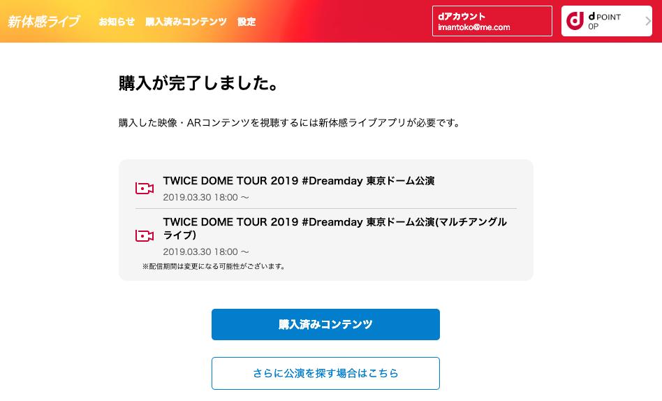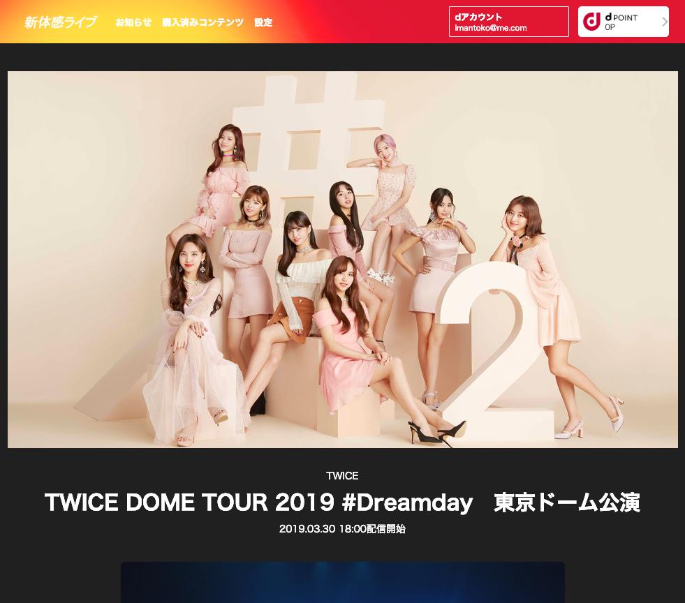 上記画面のプレイボタンをクリックすると、TWICE公演の「新体感ライブ」映像が観れます。下にスクロール。