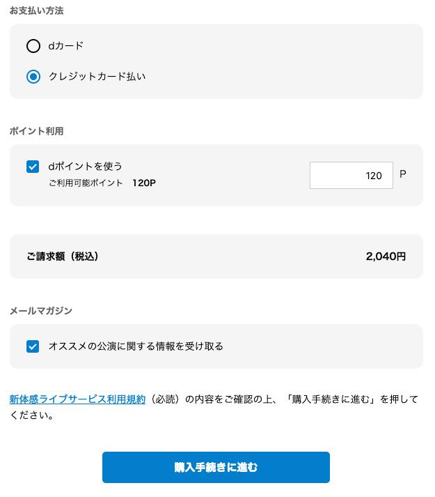 私の場合はdポイントが120P有ったので「dポイントを使う」にチェックを入れて、120Pを入力。