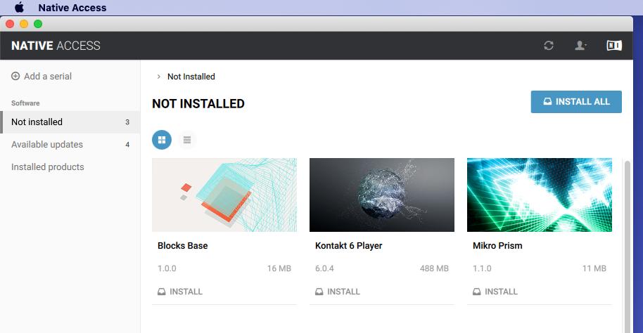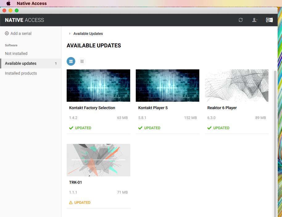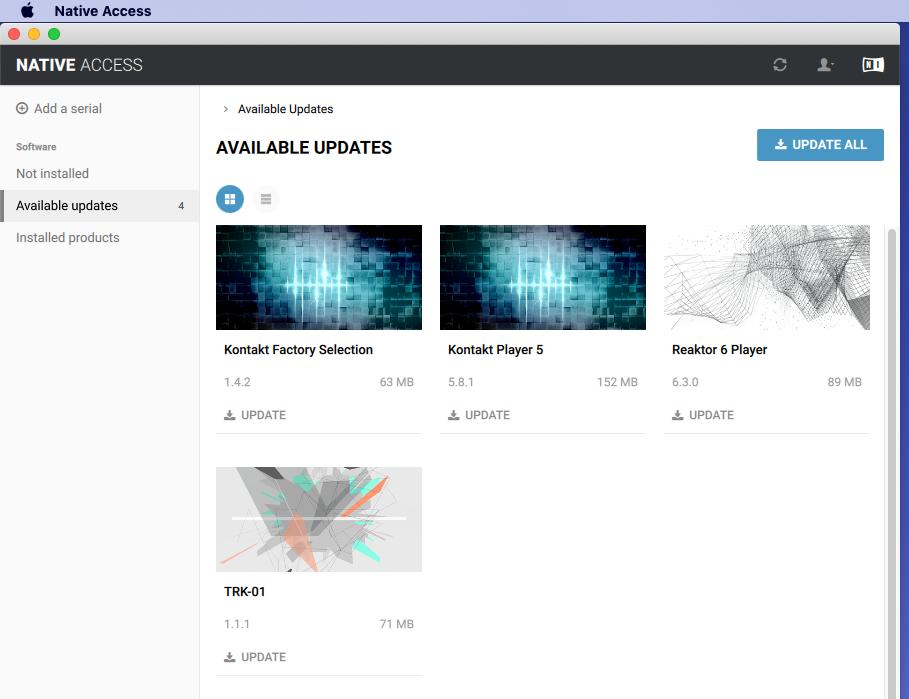 右上の「UPDATE ALL」をクリック。アップデートが終わるまで暫く待ちます。REAKTORのインストールが初めての場合はアップデートの必要はありません。