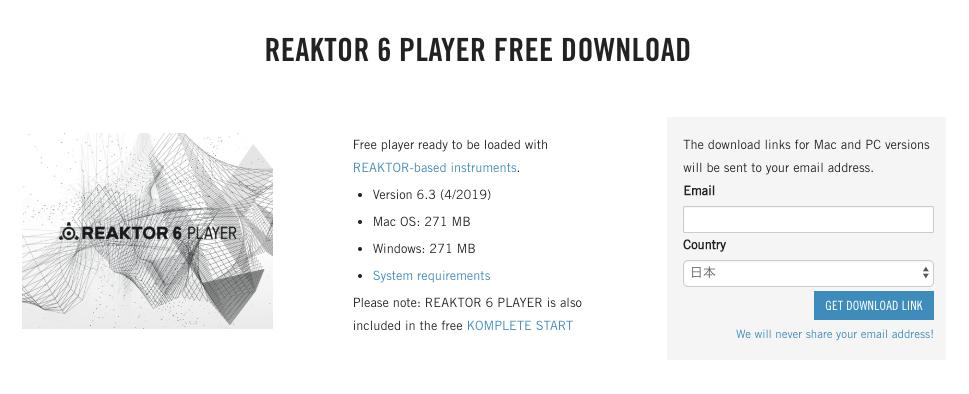 以下のREAKTOR 6 PLAYERサイトに行きます。